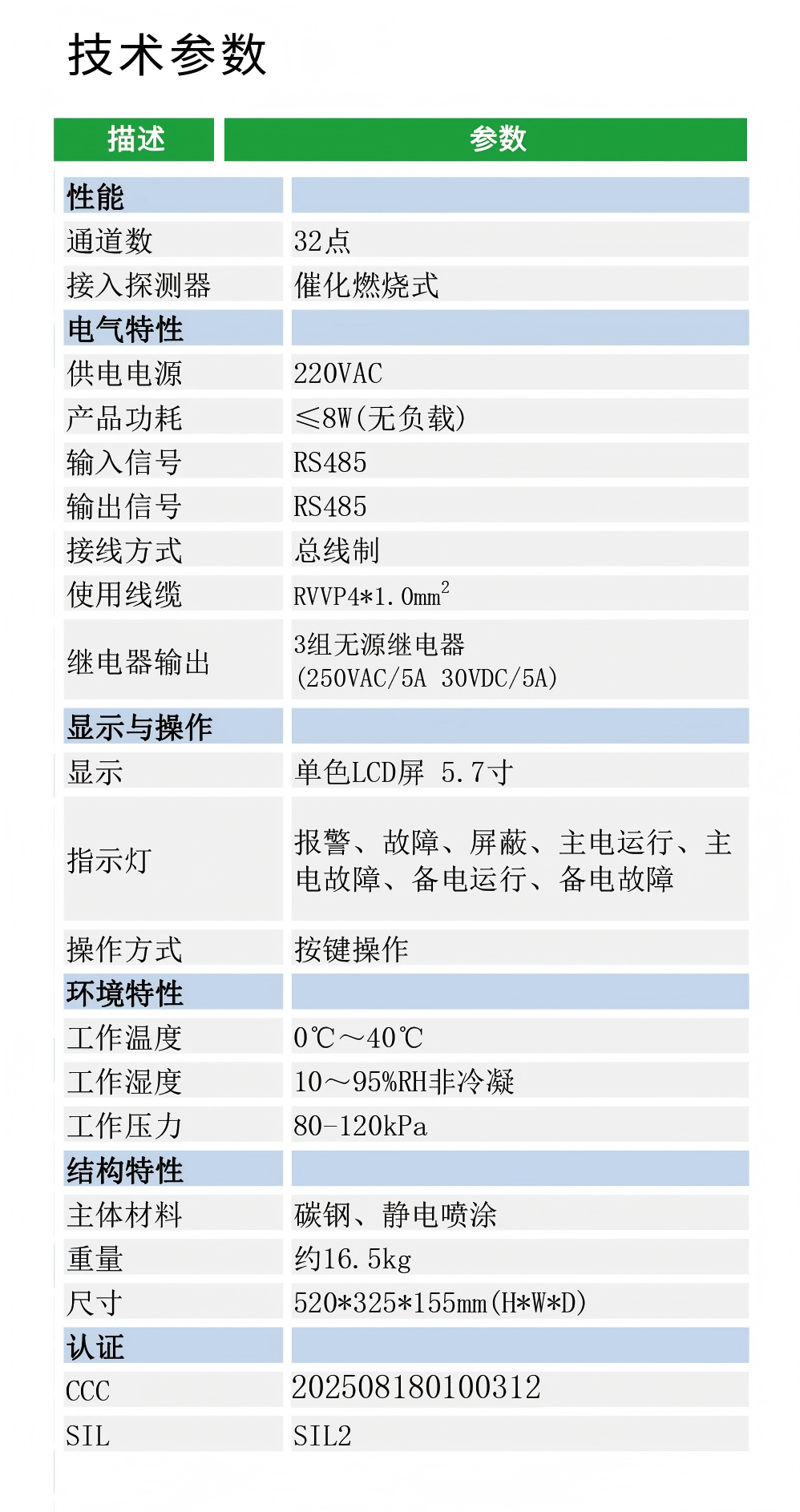 輸出信號:RS485/報警開關(guān)量輸出