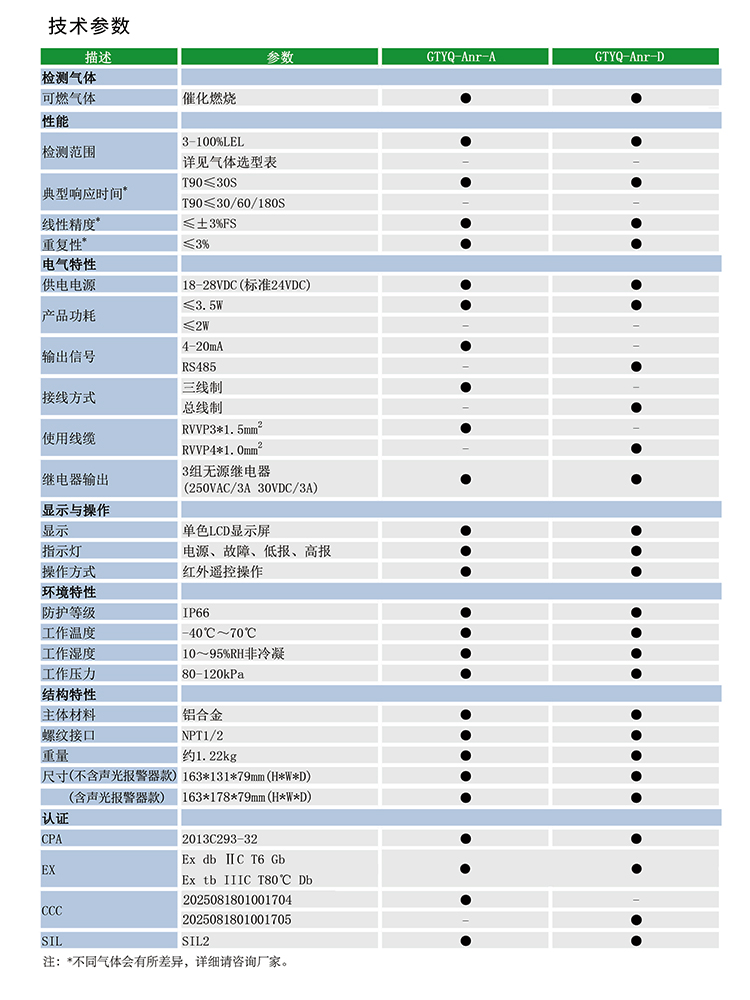 GTYQ-Anr-A/GTYQ-Anr-D型氣體檢測(cè)變送器可檢測(cè)可燃?xì)?,如:氫氣(H2)、甲烷(CH4)、天然氣等。